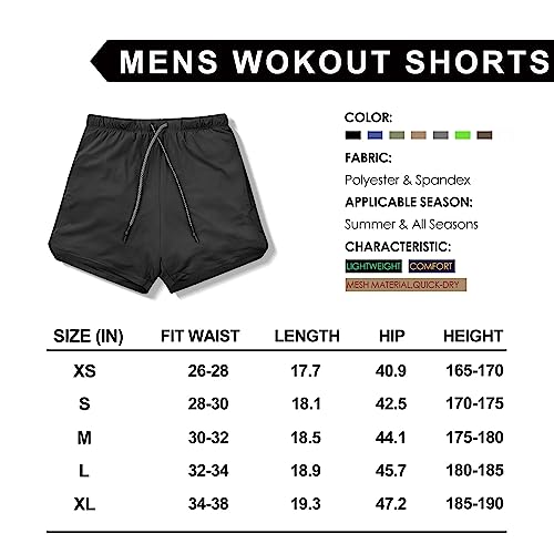 Leidowei Men's 2 in 1 Workout Running Shorts Lightweight Training Yoga Gym 7" Short with Zipper Pockets Black XL