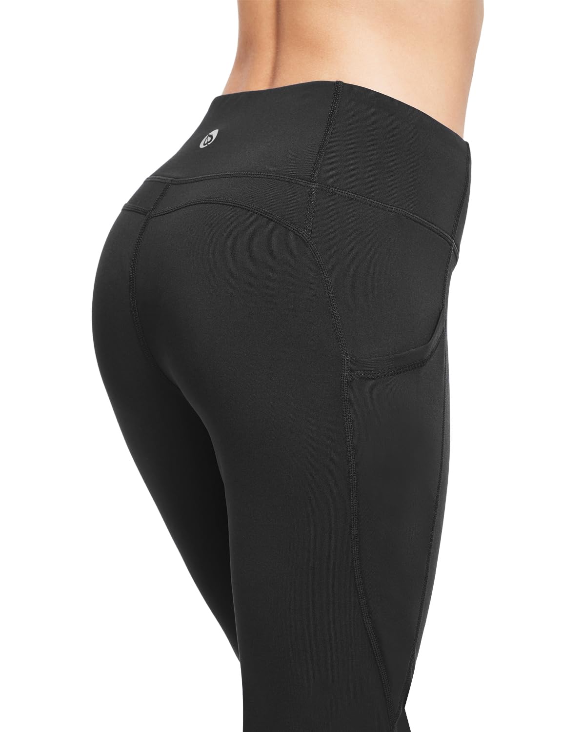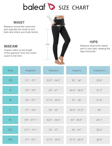 BALEAF Women's Fleece Lined Leggings Thermal Warm Winter Tights High Waisted Thick Yoga Pants Cold Weather with Pockets Black S