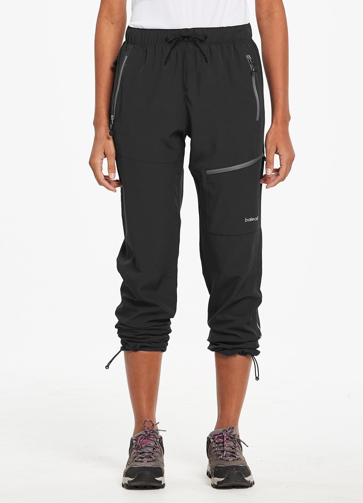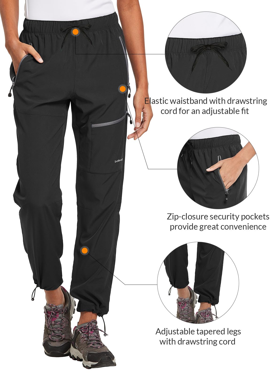 BALEAF Women's Hiking Pants Quick Dry Water Resistant Lightweight Joggers Pant for All Seasons Elastic Waist Black Size L