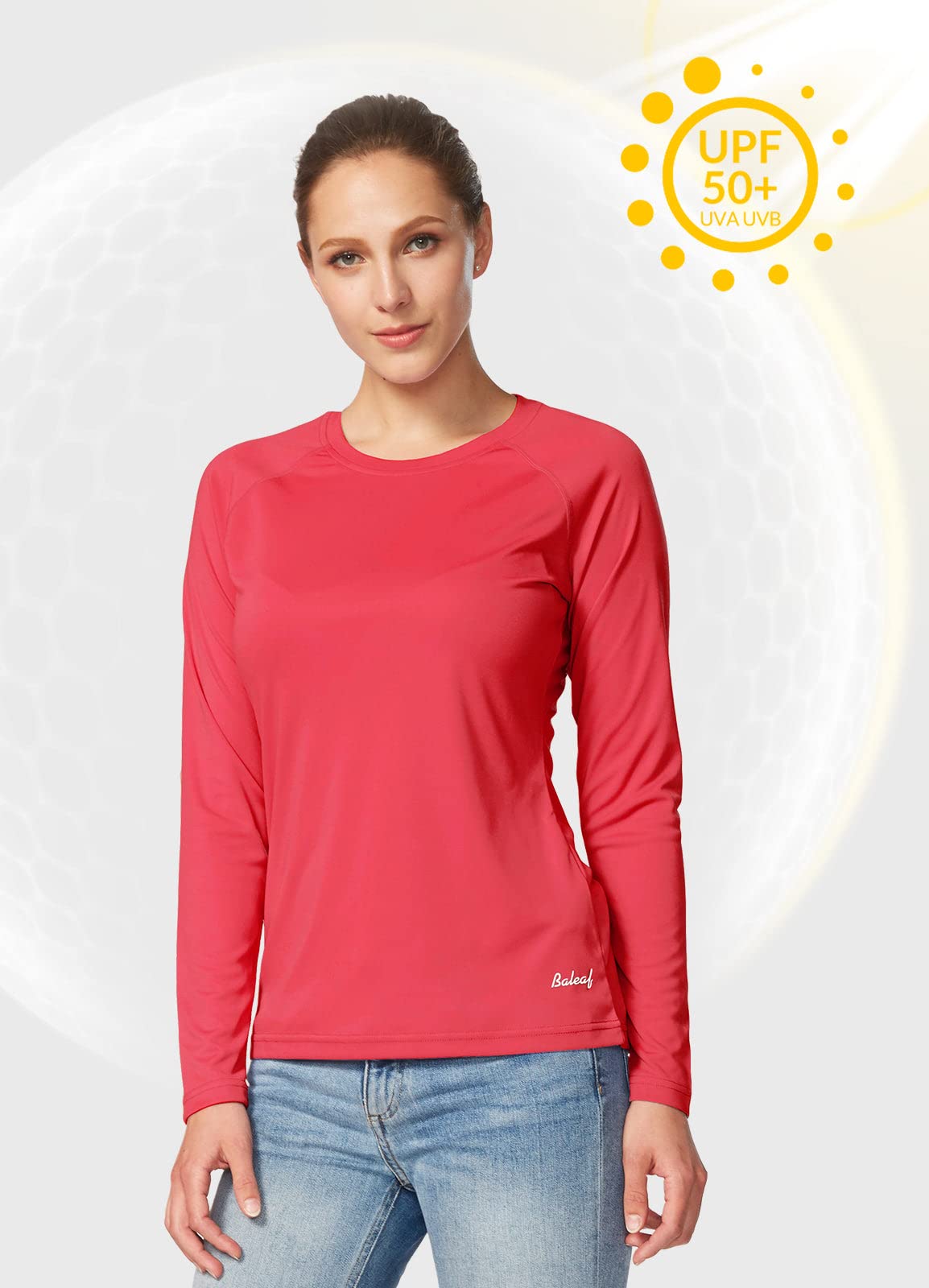 BALEAF Women's Workout Tops Long Sleeve Running Shirts Quick Dry Moisture Wicking Athletic T-Shirts for Exercise Gym Sports Yoga Rouge Red Size L