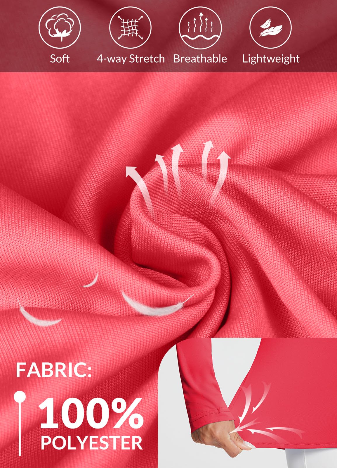 - Cool & Dry: The lightweight fabric wicks moisture away from your skin and dries quickly for extra comfort, keeping you cool and dry on running or workouts.