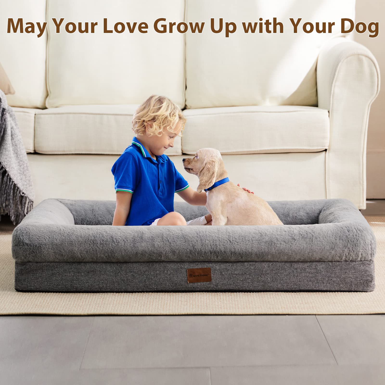 BFPETHOME Sofa Dog Beds for Large Dogs, Washable Large Dog Bed with Bolster, Orthopedic Large Dog Beds with Removable Covers & Waterproof Dog Bed for Pet