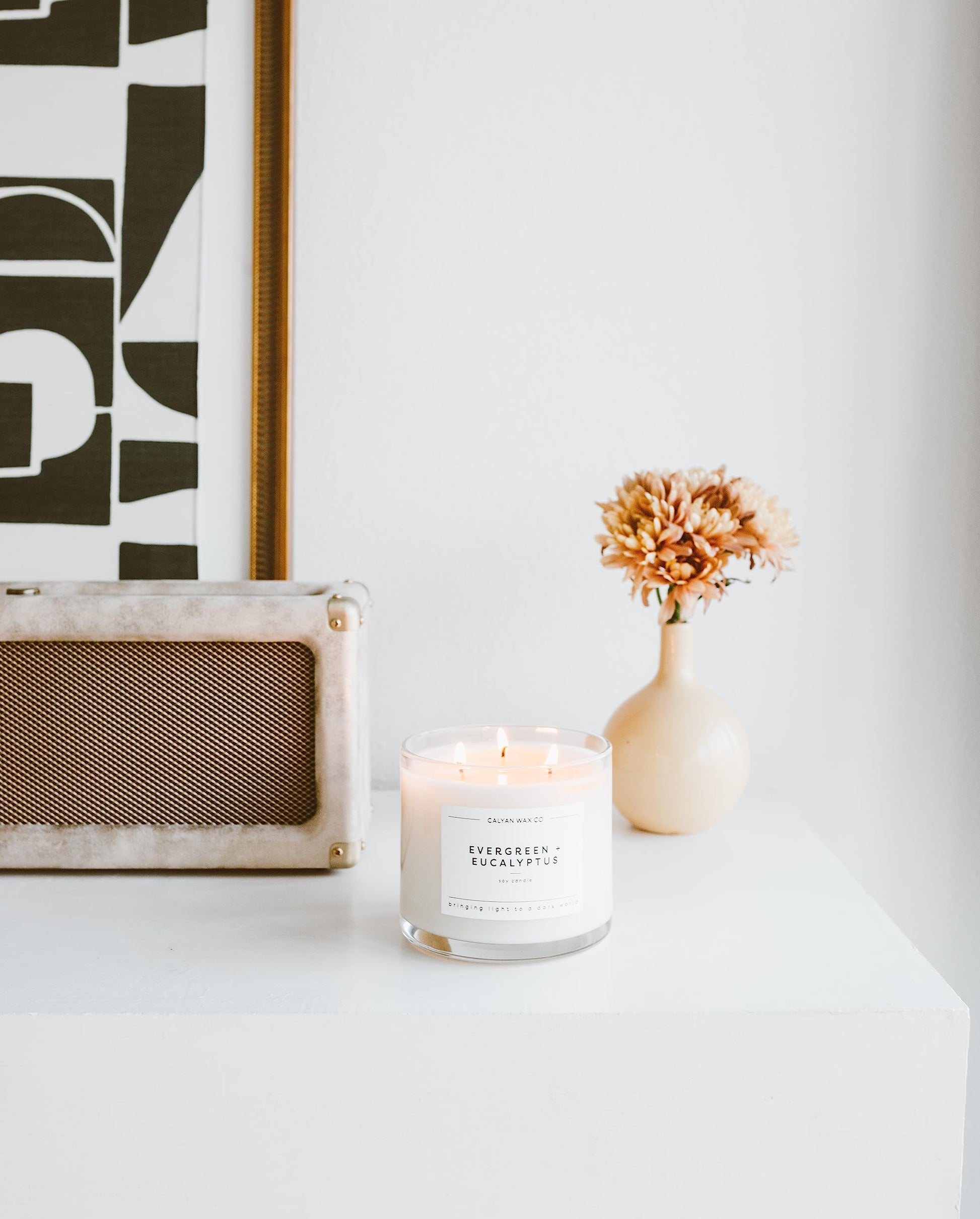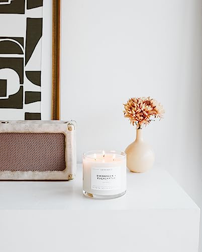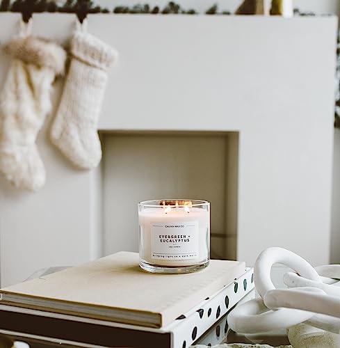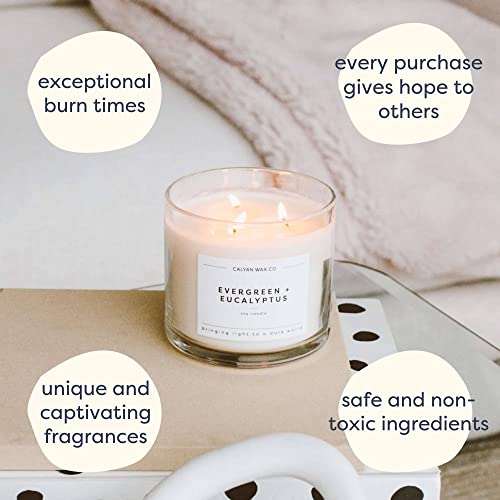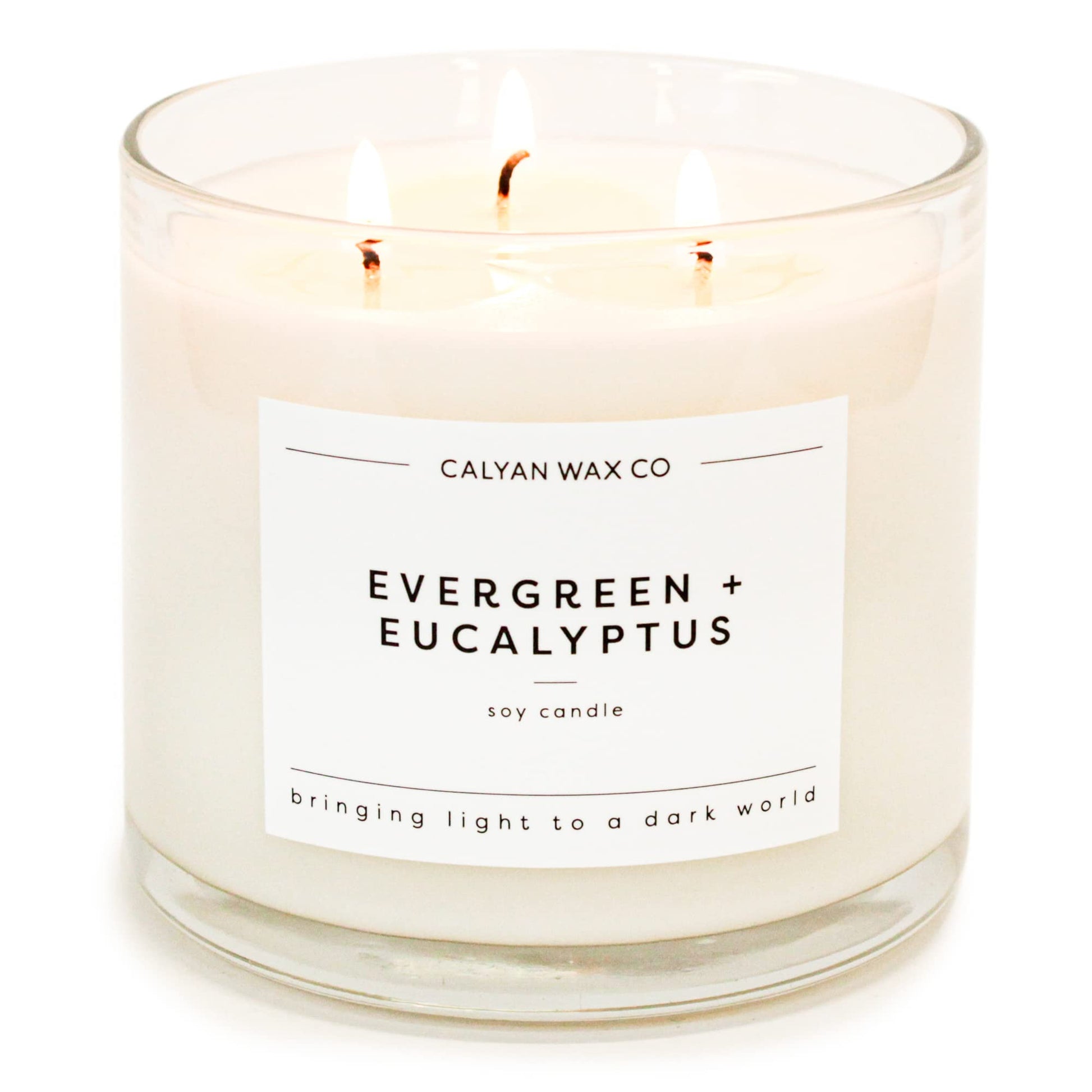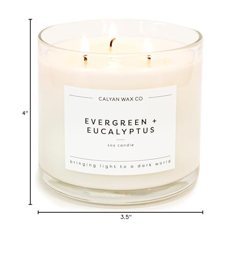 Calyan Wax Soy Wax Candle, Evergreen Eucalyptus, 3 Wick Scented Candle for The Home | Premium Candle with Essential Oils | 14.9 oz Soy Wax, 43 Hour Burn Time, Large Candle in Glass Jar
