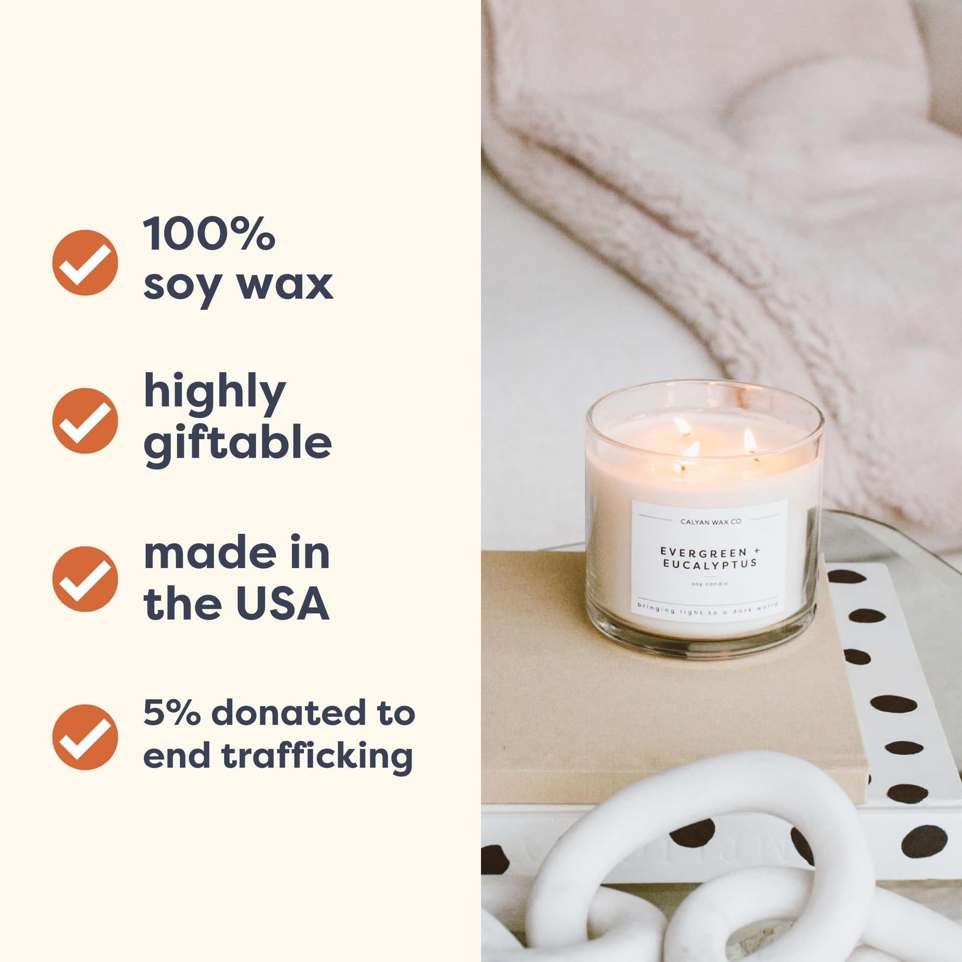 - CANDLE GIFTS that give back: Calyan Wax donates 5 percent of revenue to nonprofits dedicated to ending trafficking in the USA. Candles and room sprays make perfect birthday gifts for women, housewarming gifts, gifts for mom, or thank you gifts.