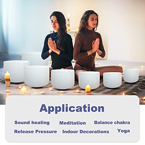 - Item Include: 7PCS 432HZ high quality crystal singing bowl 6"-12"(12"C 11"D 10"E 9"F 8"G 7"A 6"B ), 2 PCS carry case bag, 2 PCS suede mallet, 2 PCS rubber mallet, 7 PCS rubber O-ring