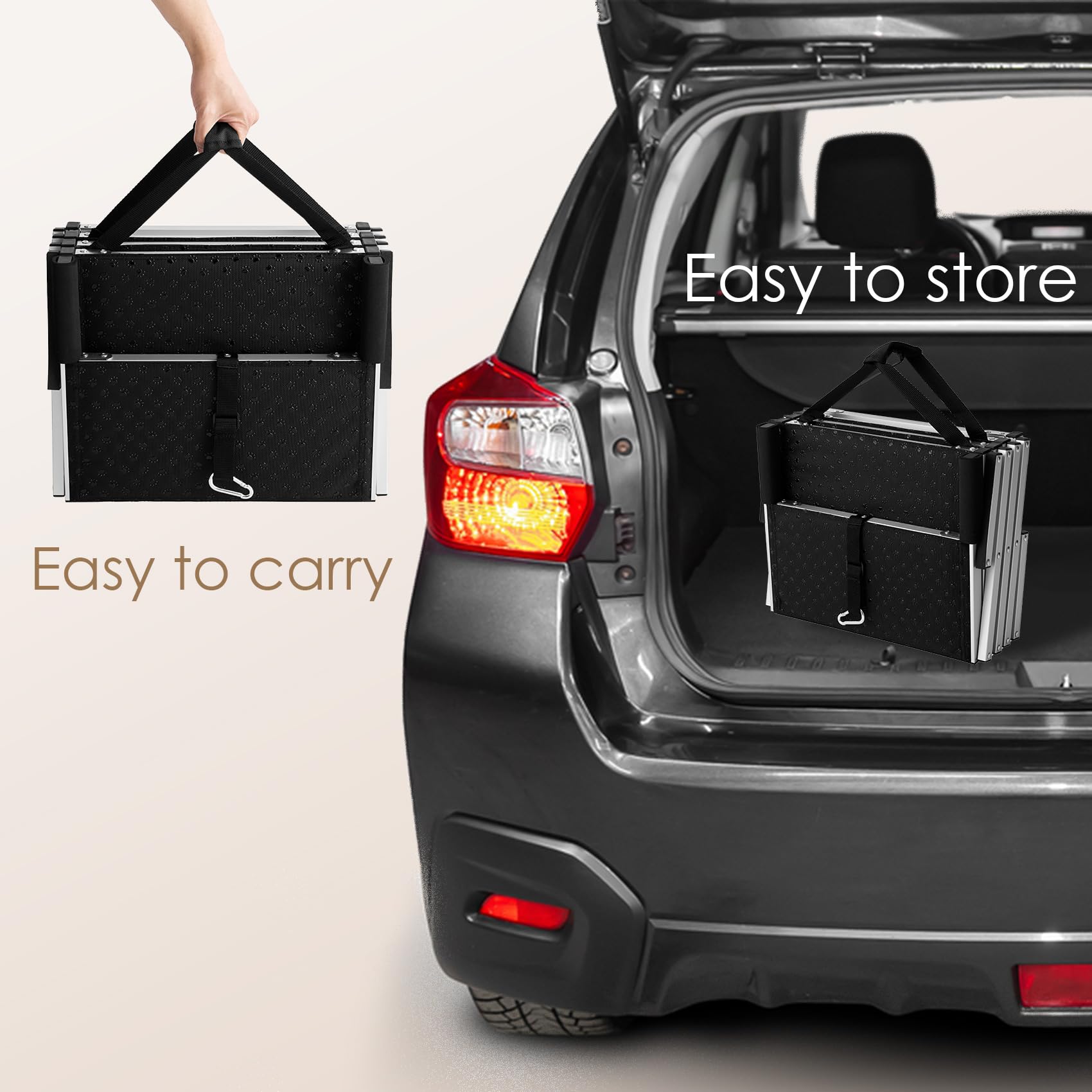 Details: EHEYCIGA dog ramp is wider and more stable than a ramp, the gentle incline puts less pressure on your dog’s front and back legs. Easing pain and better protection against injury, allowing short-legged, older, handicapped, or injured dogs to climb and down with security and comfort. The lightweight pet ramp can fold down into a convenient size and be placed in the trunk or cabinet of the car for easy storage without taking up a lot of space. It's perfect for your dog's entering or exiting cars, sedans, SUVs, minivans, trucks, beds, couches.