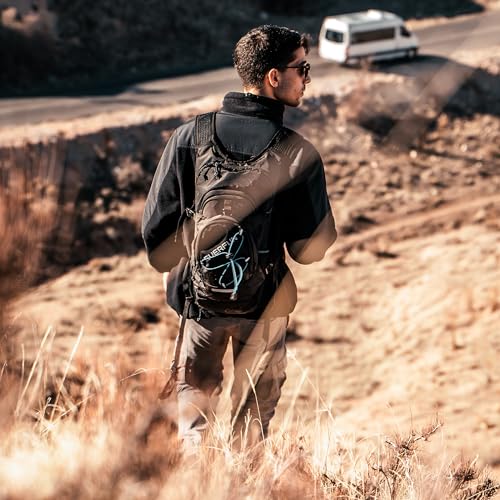 - HIKING/CYCLING/RUNNING/SKIING WITH EASE: This 2 lbs lightweight water backpack features an ultra-elastic 3D breathable padded back, adjustable chest and waist straps to provide comfort and stability for all body sizes. This day pack has got you covered for all your adventures.