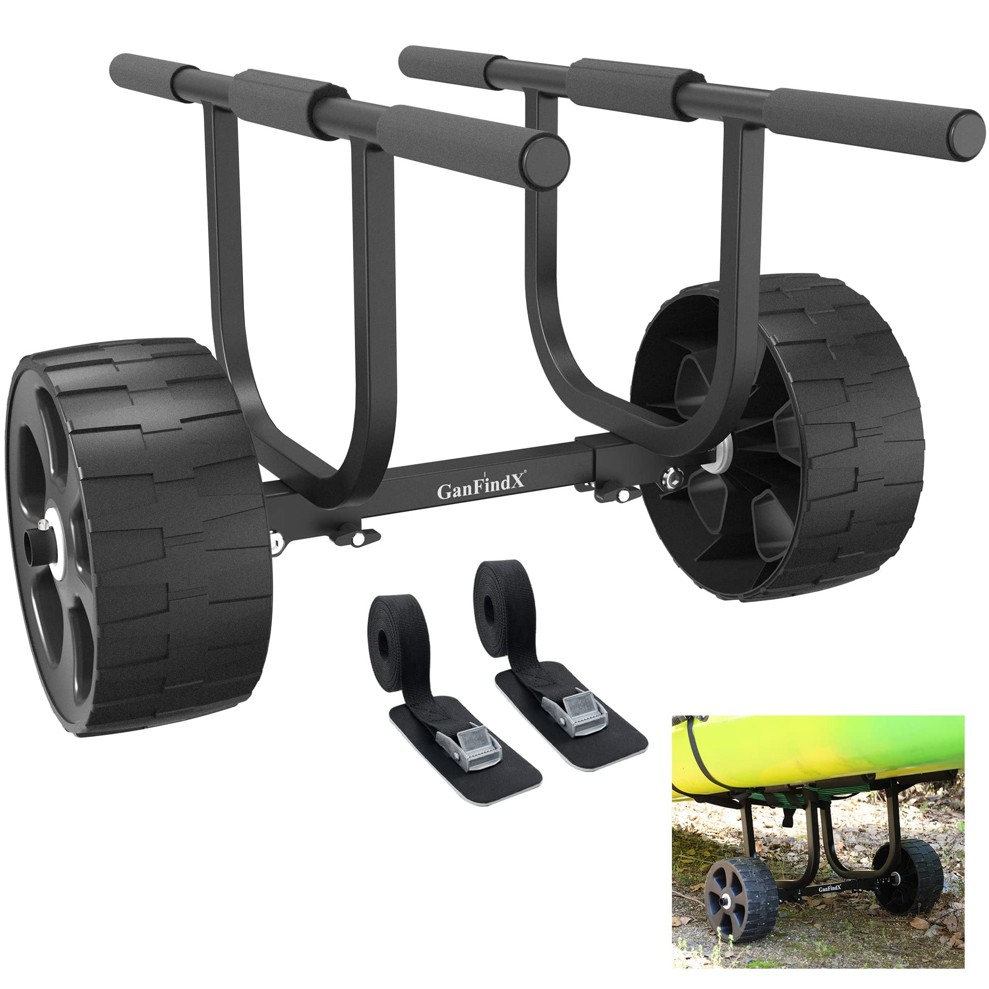 GanFindX Heavy-Duty Universal Kayak Cart Dolly Made of High Strength Metal w/Puncture-Free Wheels High | Load Capacity Kayak Wheels Cart for Kayaking/Canoeing Convenience | Webbing Straps