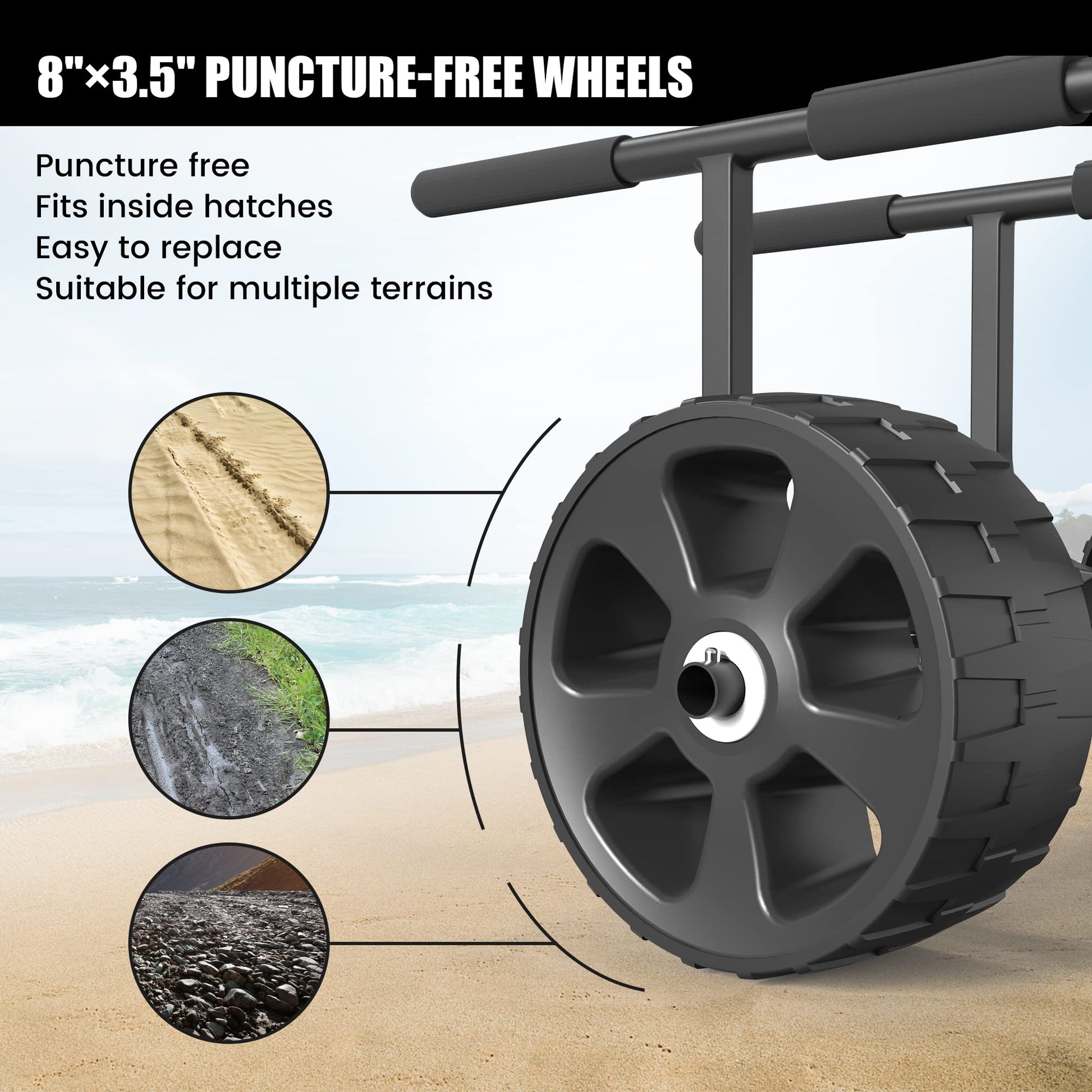 - CAPACITY: This kayak wheels comes with a strong weight capacity of up to 450 LBS, allowing users to transport heavy kayaks or canoes to the water's edge with ease and without worrying about weight limits.