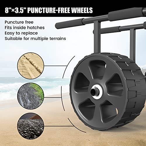 - CONVENIENT: Easy to assemble and disassemble, this kayak cart dolly provides exceptional convenience for kayakers and canoers, making it effortless to store and transport their vessels. Its durable wheels reduce upkeep costs and allow for effortless movement across sandy and uneven terrain.