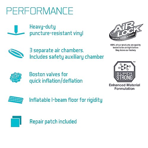 - STABILITY – Made with rugged vinyl construction and built for performance, this sturdy kayak has an inflatable I-beam floor, a low-profile deck, and high-buoyancy side chambers for stability, comfort, and function; the removable skeg provides exceptional directional movement