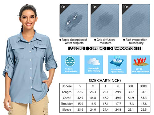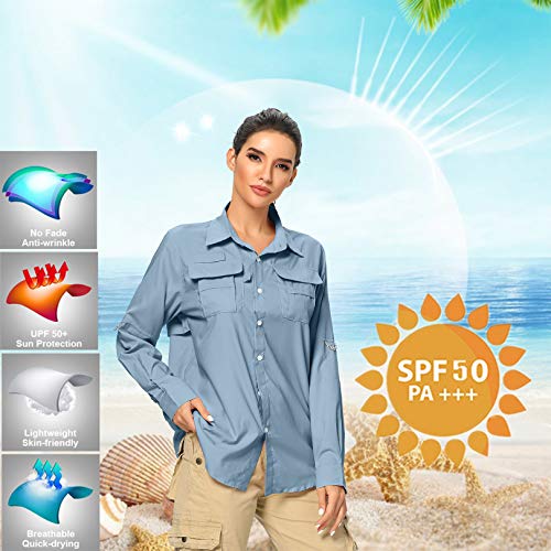 Jessie Kidden Women's UPF 50+ UV Sun Protection Safari Shirt, Long Sleeve Outdoor Cool Quick Dry Fishing Hiking Gardening Shirts (5055 Light Blue M)