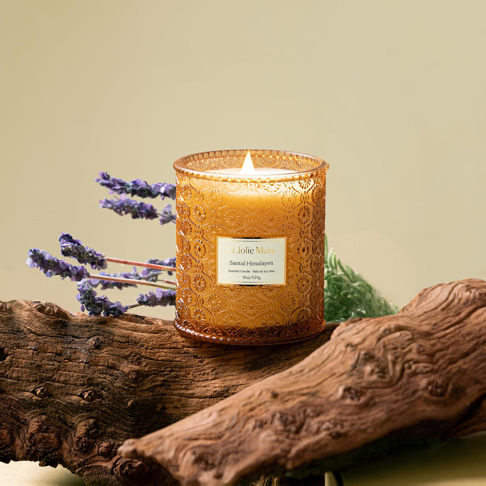 LA JOLIE MUSE Sandalwood Candle, Wood Wicked Large Candle for Home Scented, Scented Candle Gifts for Men&Women, Long Burning Glass Jar Candle, Santal Himalayen, 19oz