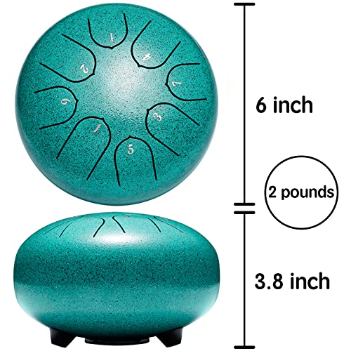 Steel Tongue Drum Musical Instruments: 6 Inch 8 Notes Metal Hand Drums, Music Gifts for Family Friends (Malachite)