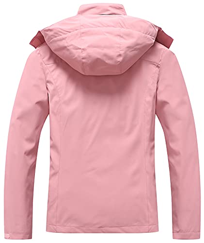 OTU Women's Waterproof Rain Jacket Lightweight Hooded Raincoat for Hiking Travel Outdoor Pink M