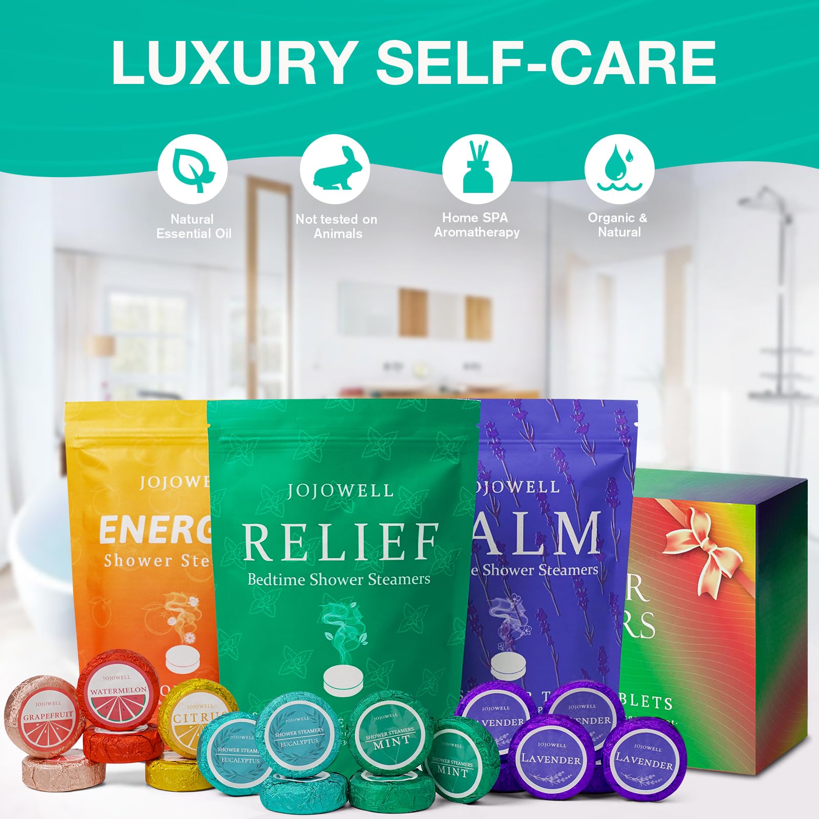 JoJowell Shower Steamers Aromatherapy - 18 Pack Shower Bombs Birthday Gifts for Women, Organic Essential Oils, Self Care, Stocking Stuffers for Adults, Christmas Gifts for Women, Men, Mom