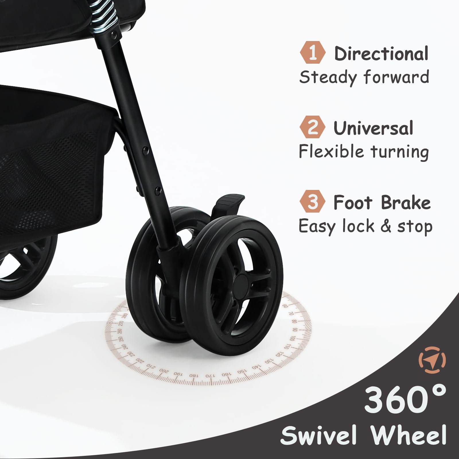SWITTE Dog Stroller 3 in 1 Folding Pet Stroller, Lightweight Pet Stroller for Small Medium Dogs Cats, 4 Wheels Puppy Stroller with Removable Travel Carrier, Car Seat, Sun Shade, Waterproof Pad, Black