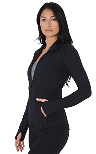 Yogalicious Womens Ultra Soft Lightweight Full Zip Yoga Jacket with Zipper Pockets - Black - XL
