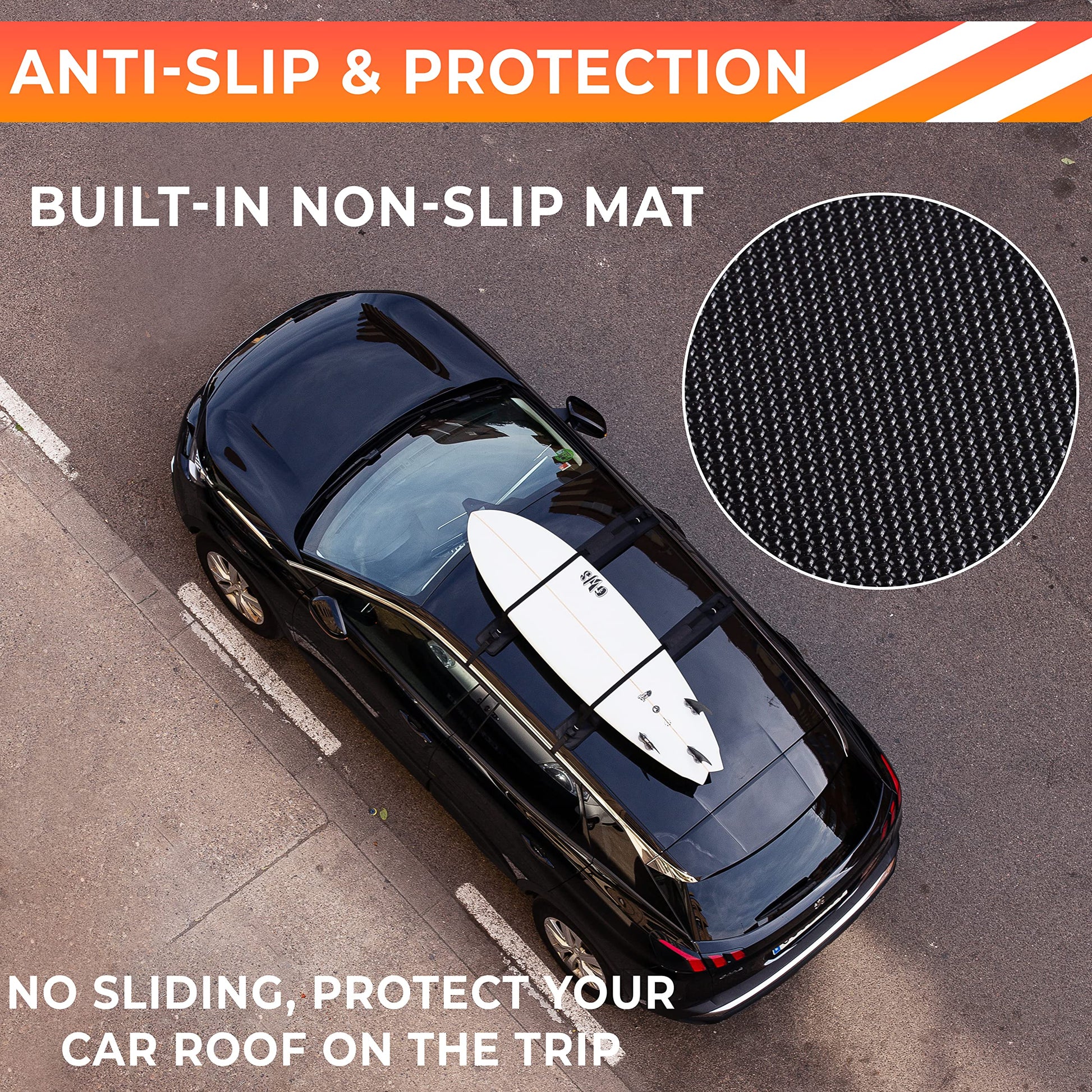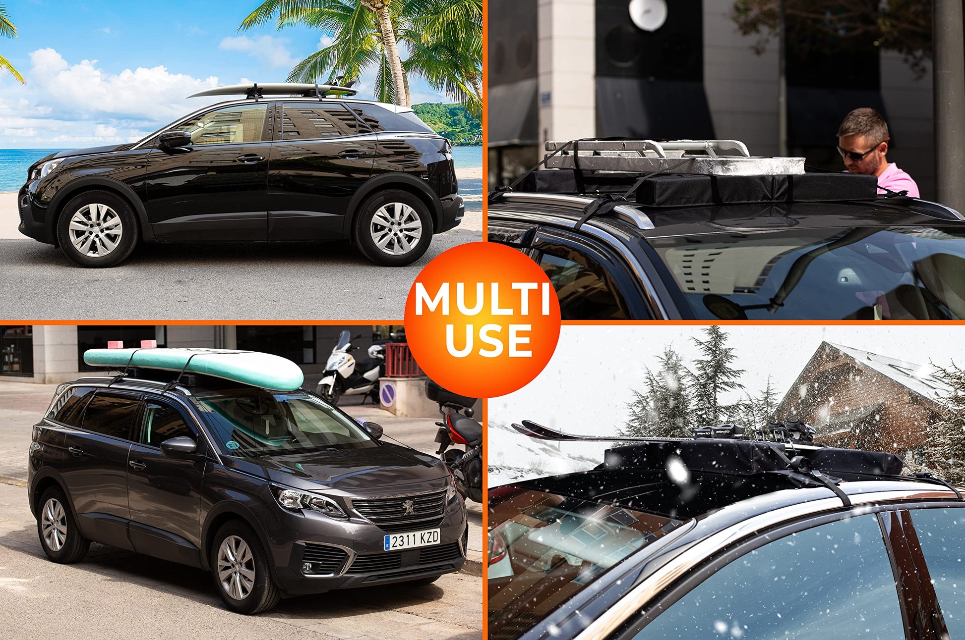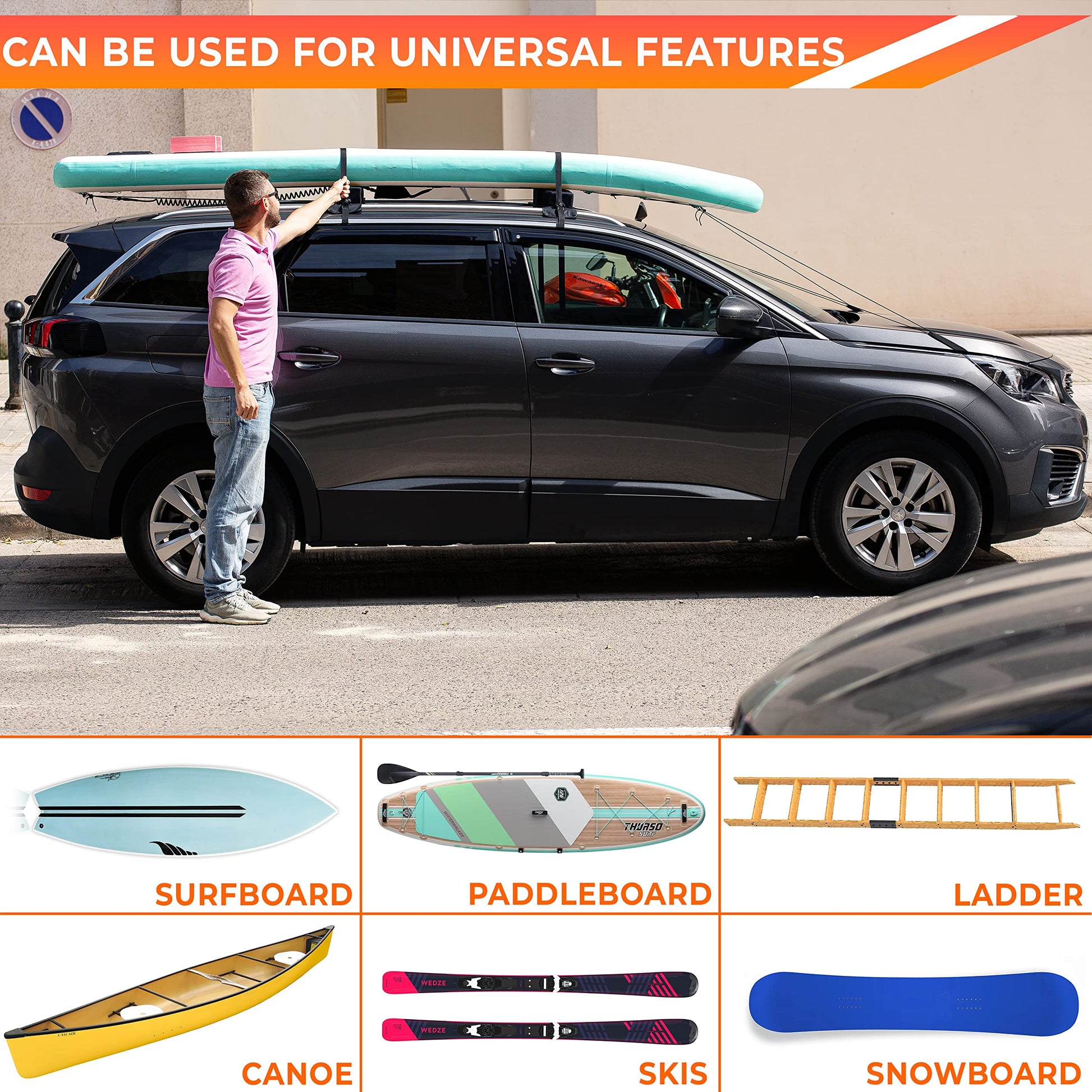 - Universal fit- Zone Tech Car Soft Roof Rack pads are designed for use with any vehicle with 4 doors. No longer do you need roof "gutters" and mounting rails, simply feed the straps down through the inside of your vehicle and tighten. Ideally suited for carrying your surfboard, kayak, sup, luggage, ladders, snowboards, skis, and more.